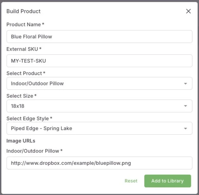 “External SKU” is very important and incredibly useful in placing orders with USHA: After the product is completed and saved in your Product Library, you can use your new External SKU to send us orders for this specific product. Sending this SKU via API or Orderdesk (for example) there is no need to send any Print File URLs as it’s already been created in your Product Library. This is a huge time saver when you are creating Bedding Sets with multiple print files! Create them in your Product Library first and use your own unique External SKU instead of complex rules and order data.